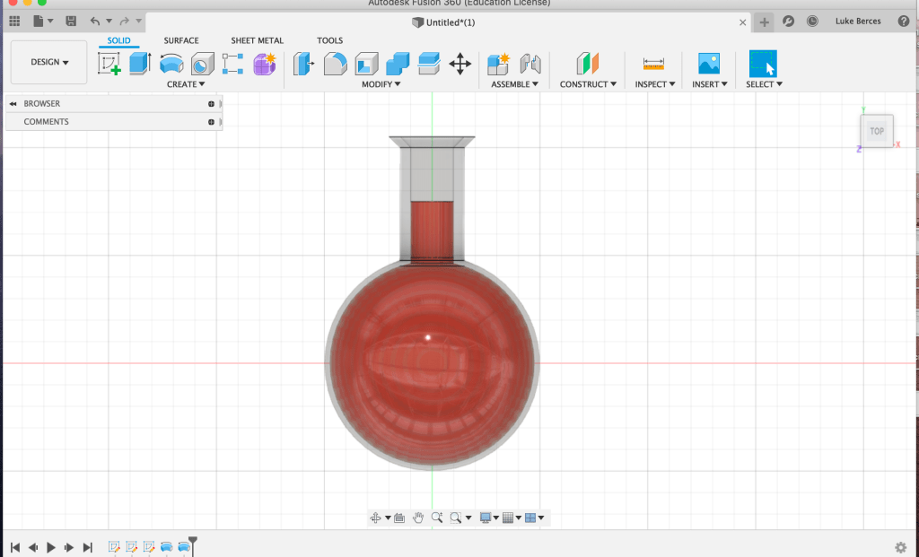 A flask with some red liquid in it. I replicated this one off the tutorial you walked through in class. I couldn’t figure out how to make the bottom flat however.